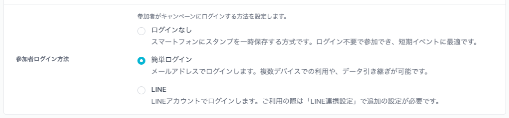 - ログインなし:スタンプを参加者のスマートフォンに保存